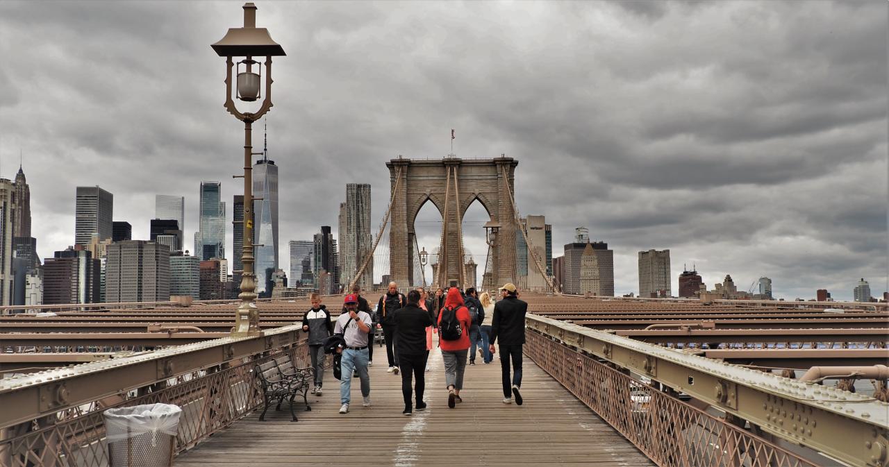 okolo Sochy Svobody na Staten Island a zpět. Pěšky přes Brooklynský
