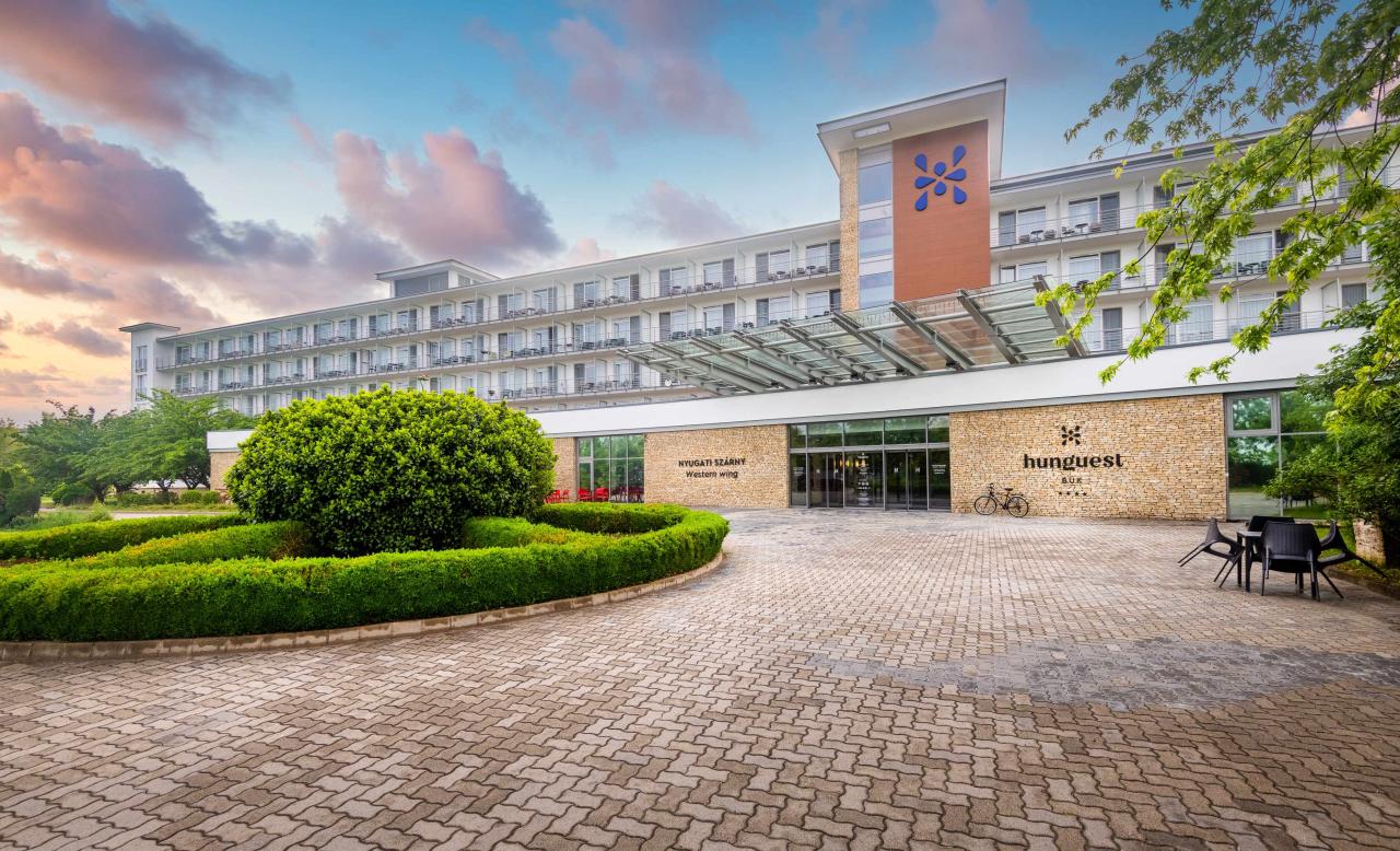 Hotel: nachází se v přímé blízkosti termálního areálu a lze přejít rovnou do léčebných lázní krytou spojovací chodbou. Hotel byl v roce 2022 kompletně rekonstruován na luxusní 4* hotel s dvěma částmi (East Wing s all inclusive a West Wing s polopenzí).