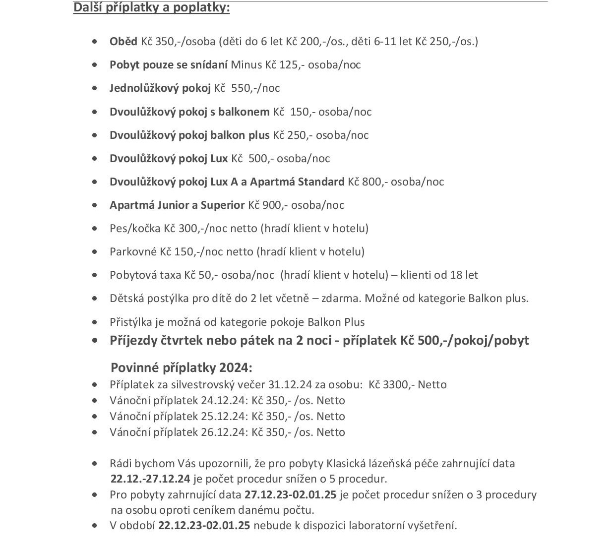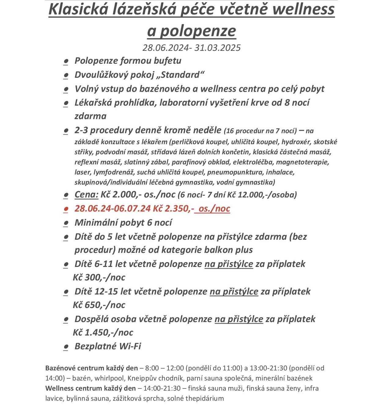 klasická lázeňská péče včetně wellness a polopenze