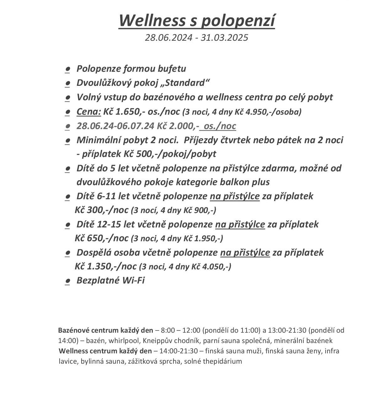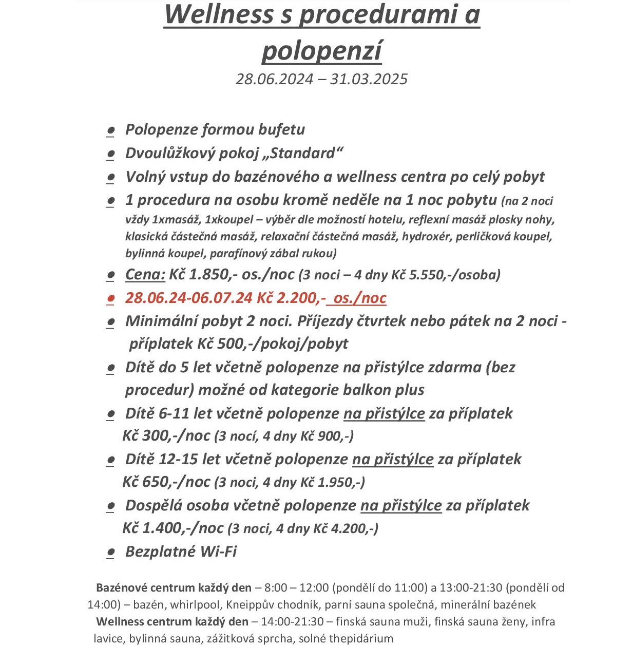 Ceny: wellness s polopenzí
